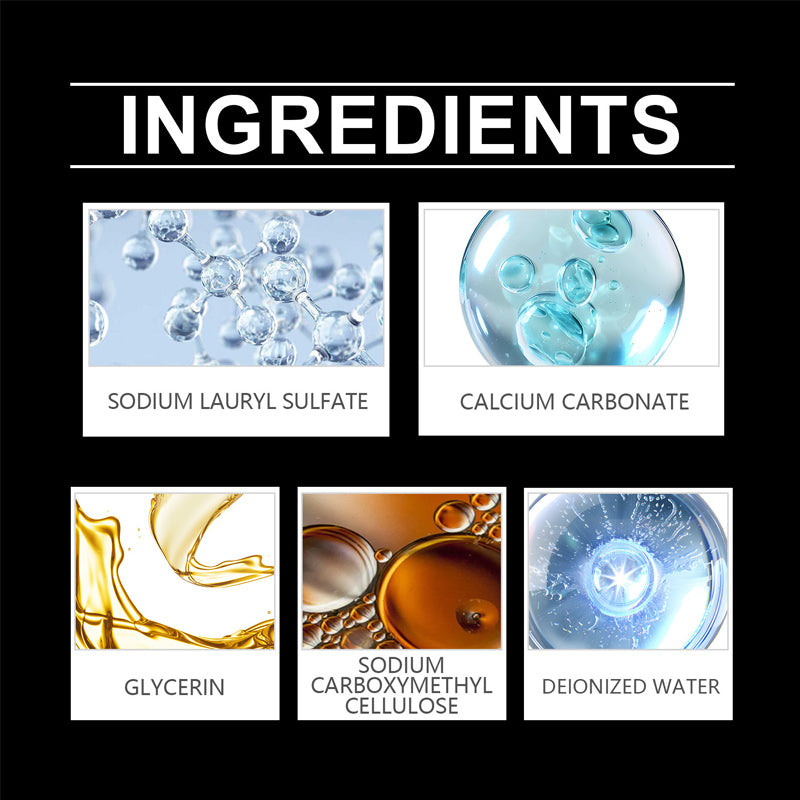 - Ingredients: Deionized water, calcium carbonate, sodium lauryl sulfate, sodium carboxymethylcellulose, glycerin