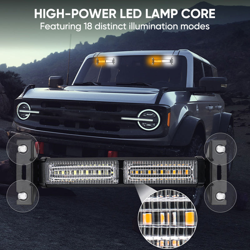 Equipped with ultra-bright LED chips and 18 different flash patterns, this light bar offers maximum visibility day or night. Stand out in any situation with customizable strobe and warning effects!
