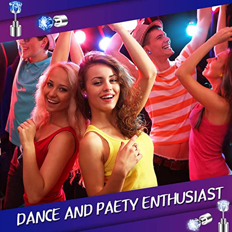 DAY & NIGHT WEAR BOTHE AMAZING: Wear the sparkling crystal CROWN DIAMOND SHADPED earrings during the day as daily jewelry. Then turn the LED light on at night or when it's time to have fun! JUST BE THE CENTRAL OF ANY NIGHT ACTIVITIES. It can be used as special glowing LED earring in birthday party Disco Rave Club, and also as decorations on backpack hat coat jacket etc.
