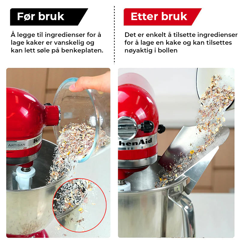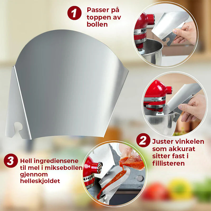 【Spillforebygging】: Helleskjoldet har et nøye designet spor som forhindrer at ingredienser søler ut, og holder arbeidsområdet rent.