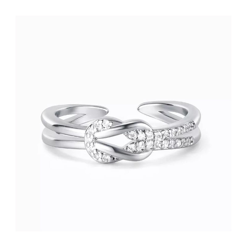 - 🍁 Simple knot ring featuring sparkling zirconia stones for a stylish look.