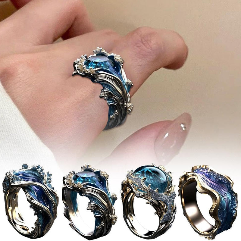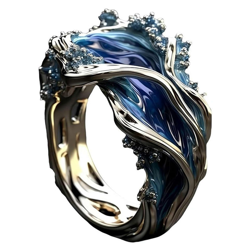 Ocean's Oath Ring: This Ocean's Oath Ring is inspired by the ocean, where life ebbs and flows like the waves lapping at the shore. It is a constant reminder to be strong and keep moving forward.