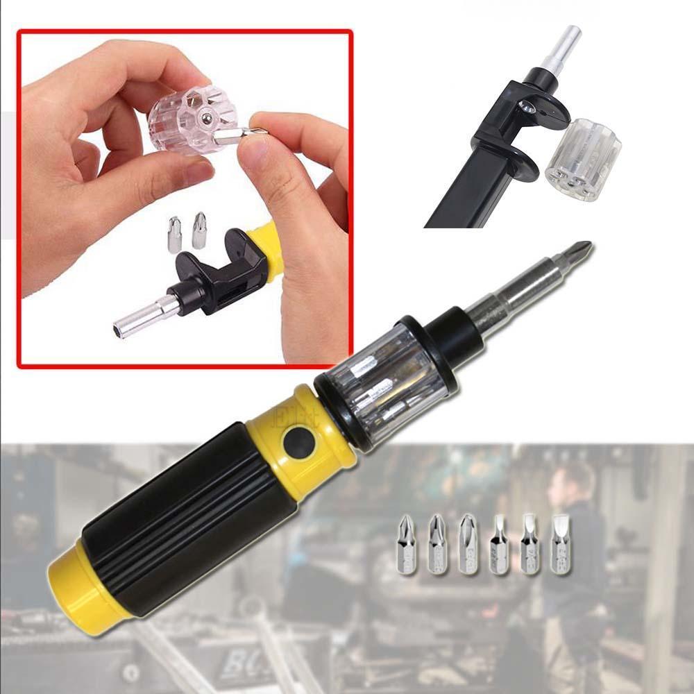Tired of running up and down ladders for the right size screwdriver? Frustrated when you can't find the bit that fits? Our 6-in-1 Multifunctional Rotating Screwdriver will save you from coping with too many various screwdrivers, portable and convenient for you to use! The screwdriver changes bits quickly and easily with a twist.