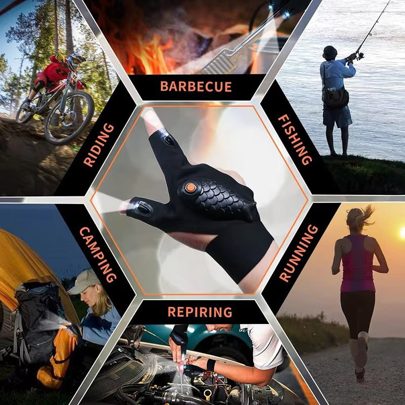 - Widely Applicable -- These gloves can be used for night fishing, car repair, or for working in tight spaces with low visibility, such as repairing pipes, sinks, air conditioners. They can also be used for outdoor activities at night like camping, cycling, walking, running or dog-walking.