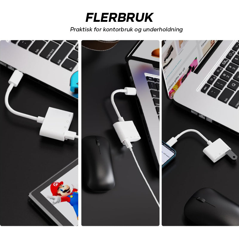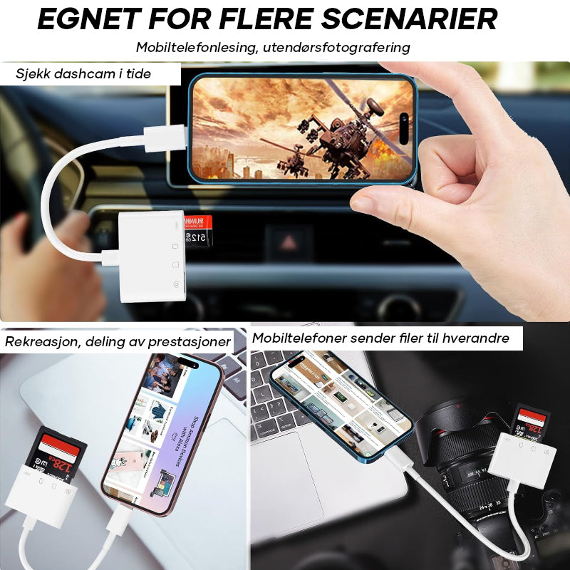Dual-Connector: Inkluderingen av både en LᎥghtnᎥng ledningskortleser og en USB-C til lightning-adapter, som sikrer kompatibilitet med nesten alle dingsene dine, fra iPhone 5 - 14 til din USB-C iPhone 15, iPad, Macbook, Mac, Laptop eller Android-enheter.