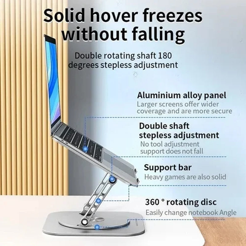 ✅360° ROTATING ET ADJUSTABLE DESIGN: 360 ° all-round rotation, easy to change the angle of the laptop stand, at any time to turn to deal with different occasions need the angle, and the sound issued by the rotation of the stand is very decompression. ThAs low as 2cm and as high as 17cm, choose the most suitable height for various occasions in the office and protect your cervical spine.