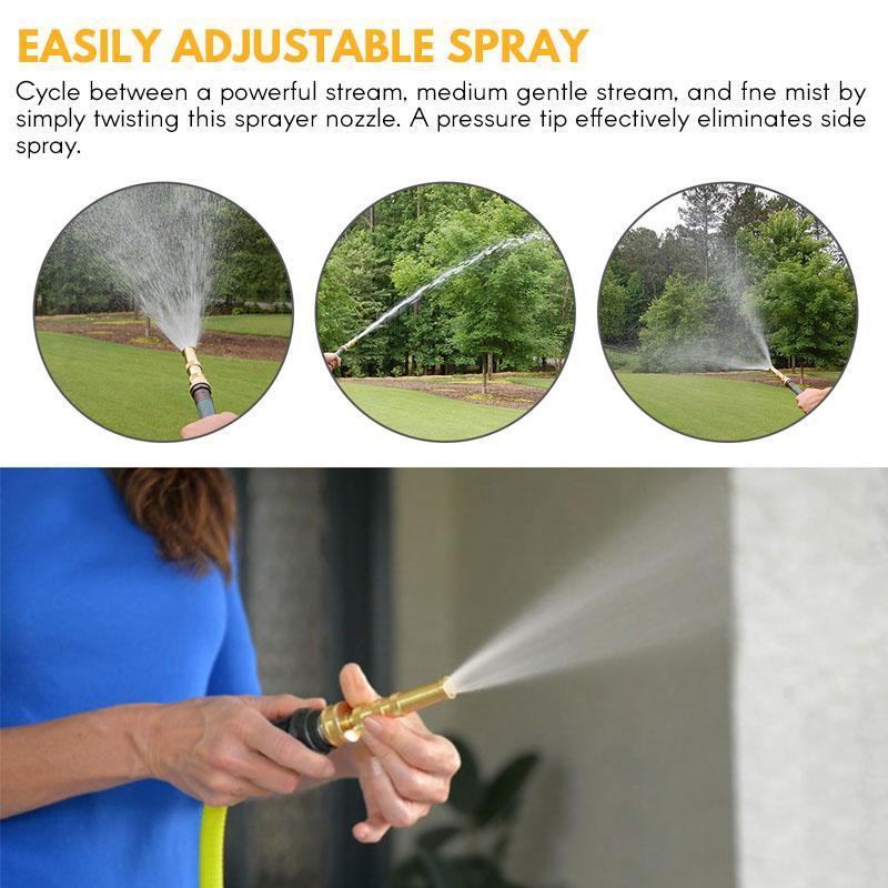 These garden hose nozzles with a quality leak-proof design, heavy-duty solid brass construction for maximum pressure & water flow, with easily replacement o-ring seals, create a watertight connection to prevent leaks, adjustable from turning the water off to fine mist to shower spray to powerful pressure jet stream, great cleanup hose nozzle for walkways, patios, backyard, gutters watering gardens, car washing, deck, siding & driveway cleaning and more.