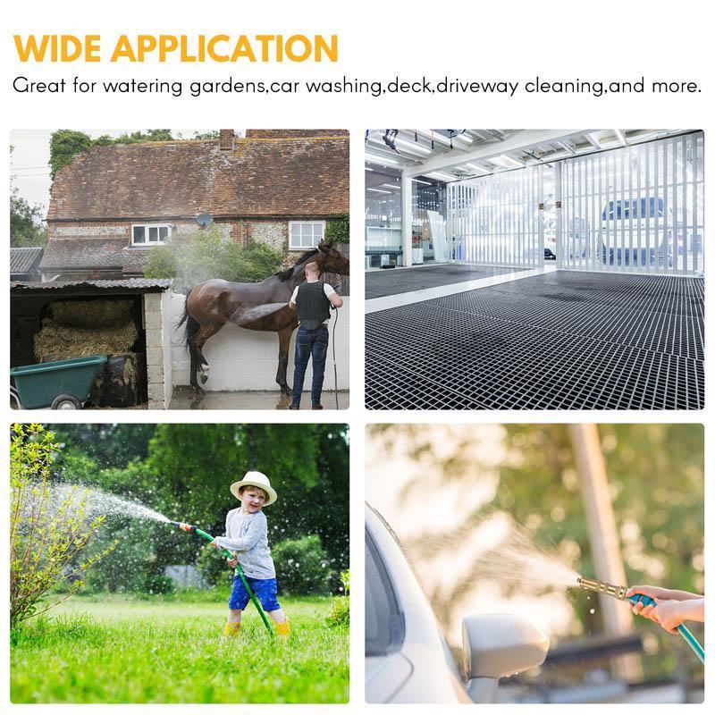 With multiple spray patterns and flow volume. This garden hose nozzles are great for watering gardens, car washing, deck, siding & driveway cleaning and more. -