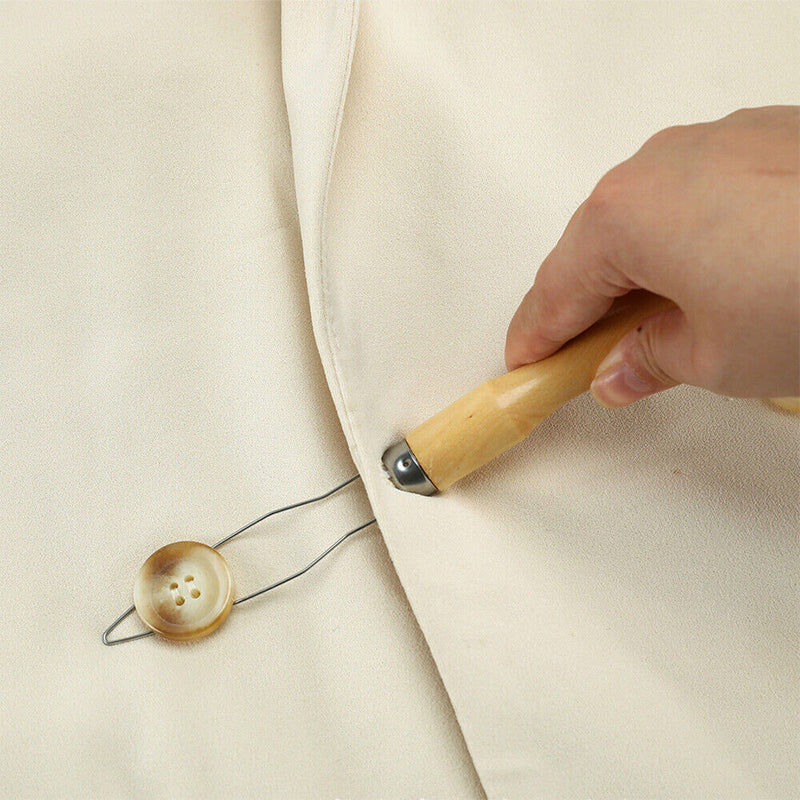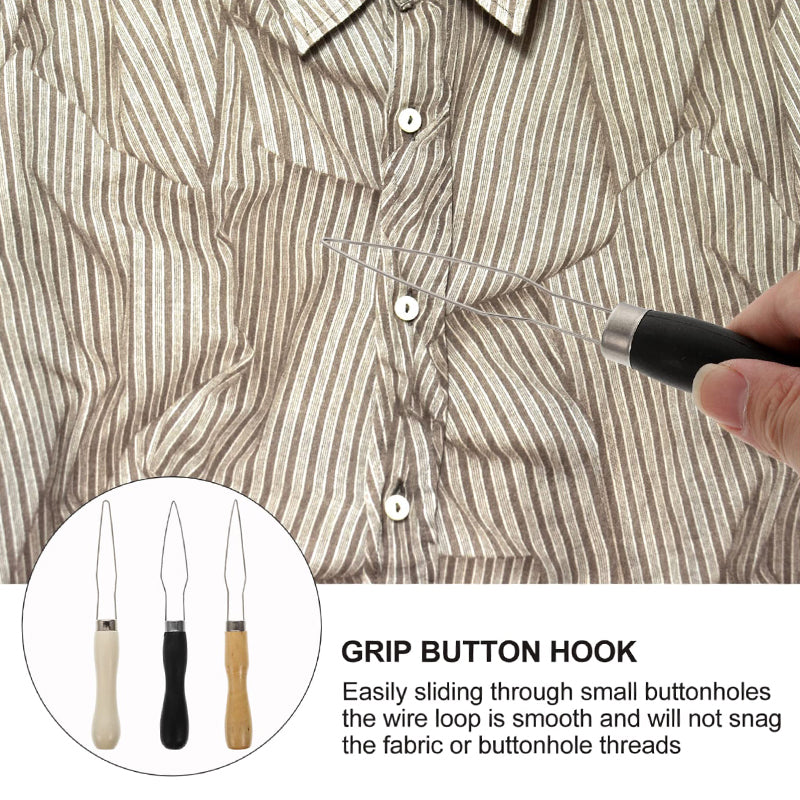 - 👍 SNAG FREE WIRE LOOP: The button hook’s wire loop is slim and smooth to prevent snagging the fabric or buttonhole threads. The steel wire loop also narrows at the tip to lock each button in place, making pulling it through the buttonhole easier.