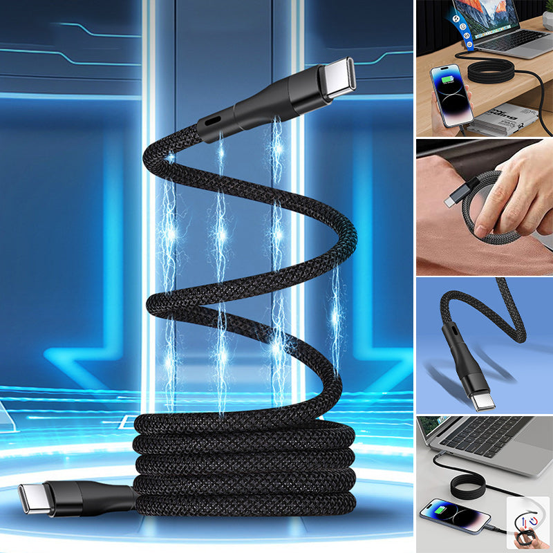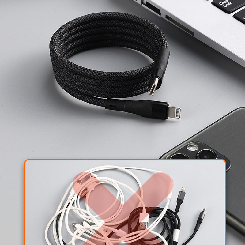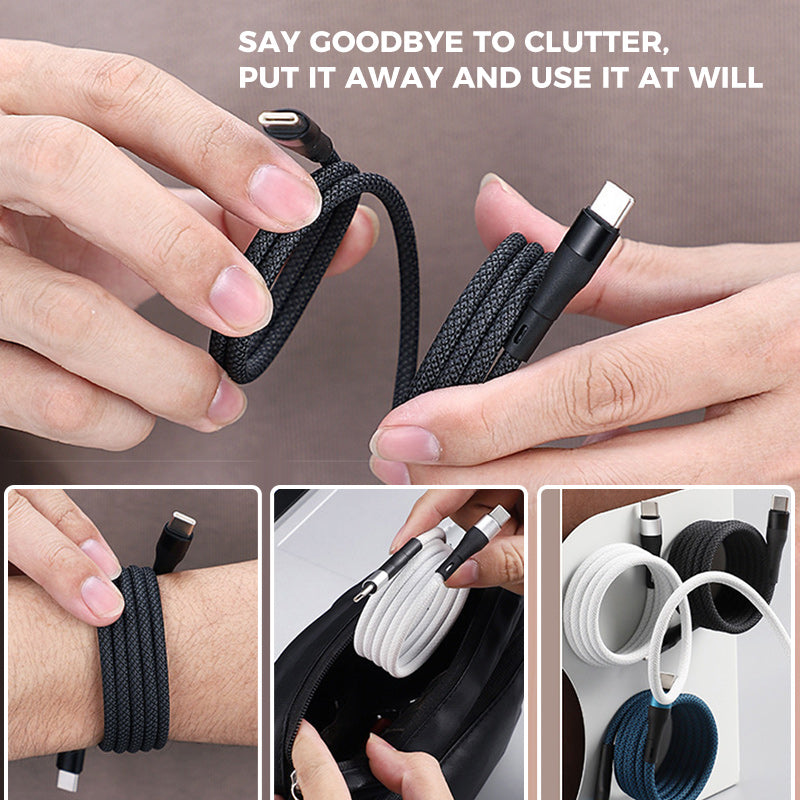 - MAGNETIC CABLE - This unique new charging cable is a cord that's filled with little magnets that keep it super organized and tidy.
