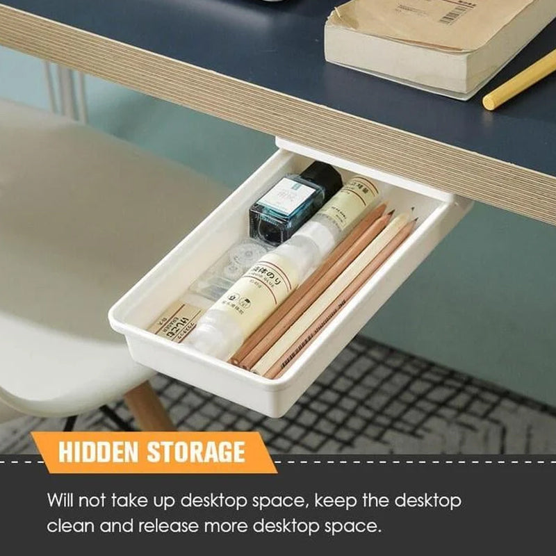 - Convenient - Perfect invisible solution for storage pens and phone supplies under your desk. The drawer pencil tray is suitable to install under the desk, you can paste them anywhere to make the most of the space.