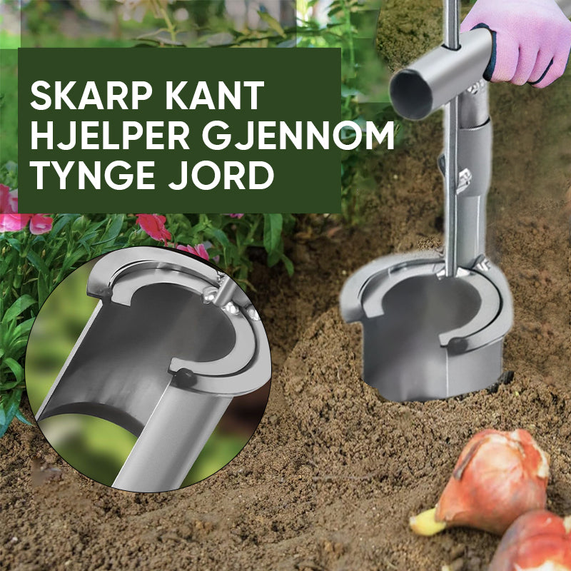 Løkløftmaskin for planting -Med sitt lange håndtak gir den enkel tilgang til dypere jordlag, noe som gjør den ideell for planting av løker og andre planter som krever dypere hull. Bare sett plantetransportøren i bakken, snu den og trekk den ut for å lage det perfekte plantehullet. Frøplanterverktøy for å grave hull til ulike løkplanter som tulipaner, krokus, georginer, gladioler, liljer, bunndekke og grønnsaker.