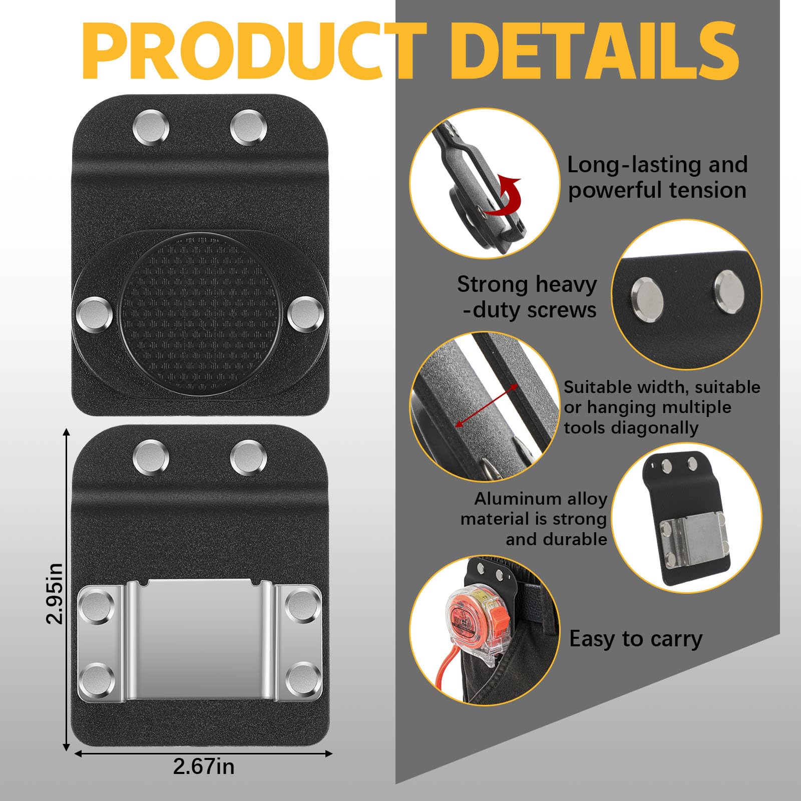 - Wide placement capacity: The tool belt clip is designed to accommodate a wide range of tools, such as hammer, pliers, screws, nails, pipes and more, improving efficiency and accessibility during work.