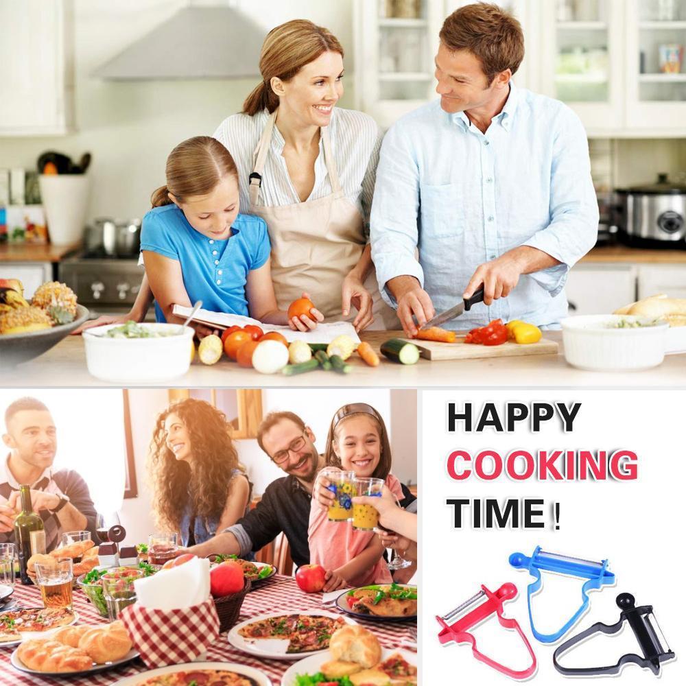 - 3 IN 1 PACKAGE - 3 peelers with different blades, Black 50mm Peeler, Blue 68mm Peeler, Red Julienne Peeler. Peel everything! Able to peel things into different shapes according to your need.