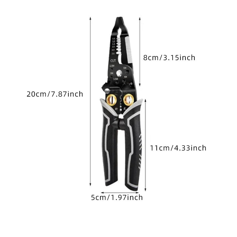 - Versatility at Your Fingertips - Strip wires of various gauges, cut through cables effortlessly, and crimp terminals with accuracy—all with a single tool. It's the perfect solution for electricians, hobbyists, and anyone who values efficiency and convenience.