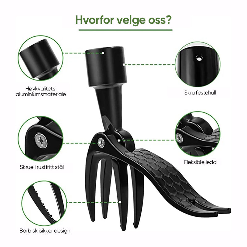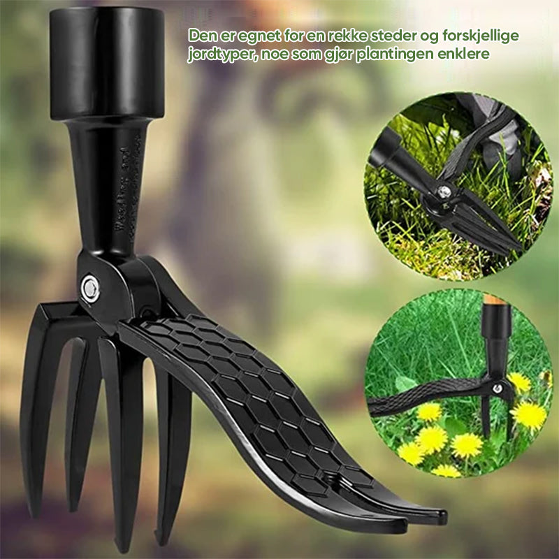 Ergonomisk design -- Den stående ugressavtrekkeren har en unik tverrstang + mothake sklisikret design, ved å bruke spakprinsippet til pedalen, uansett om du tråkker på gjørmen eller lirker gressrøttene er svært arbeidsbesparende.