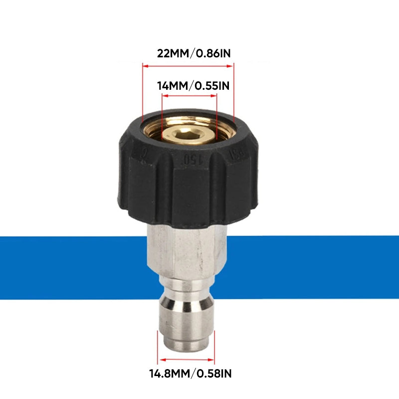 - Powerful Compatibility: Suitable for various brands and models of pressure washers and hoses. It has a standard M22 swivel interface, a 3/8-inch quick connector and a 3/4-inch quick connector, providing comprehensive usability to meet the needs of different users.