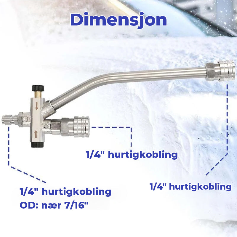 Forvandle din rengjøringsrutine med vårt innovative skumblaster-tilbehør med doble koblinger, designet for å koble til en høytrykksvaskerdyse og snøskumkanon samtidig.
