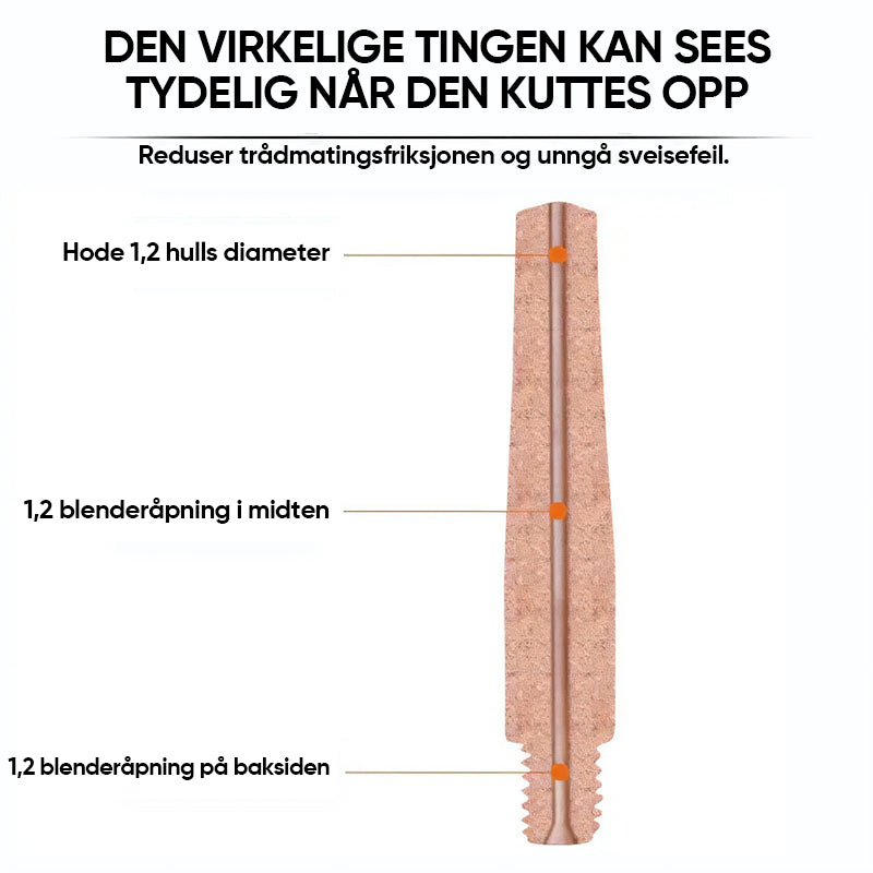: Den belagte ledende munnstykkets innovative design sikrer at sveiseslagg enkelt glir av, forhindrer oppbygging og lar deg opprettholde en fri sveisebane uten avbrudd.