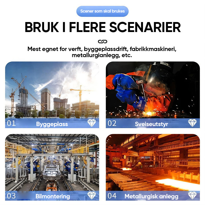 BRUK I FLERE SCENARIER:Egnet for verft, byggeplassdrift, fabrikkmaskineri, metallurgiske anlegg, etc.