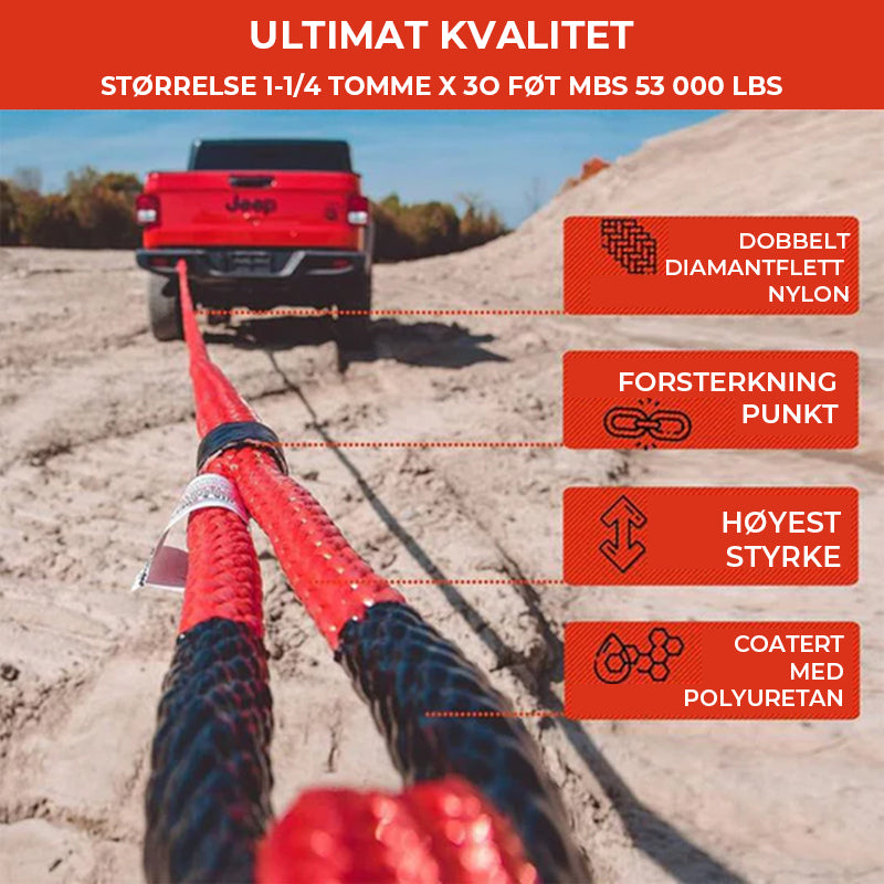 🚘 【Høystyrke og stor forlengelse】Forlengelsen av nylon vil effektivt overføre kinetisk energi fra det assisterende kjøretøyet til det fastkjørte kjøretøyet. Kninetisk tau strekker seg opp til 30%, det reduserer støtbelastningen kraftig