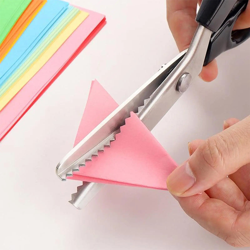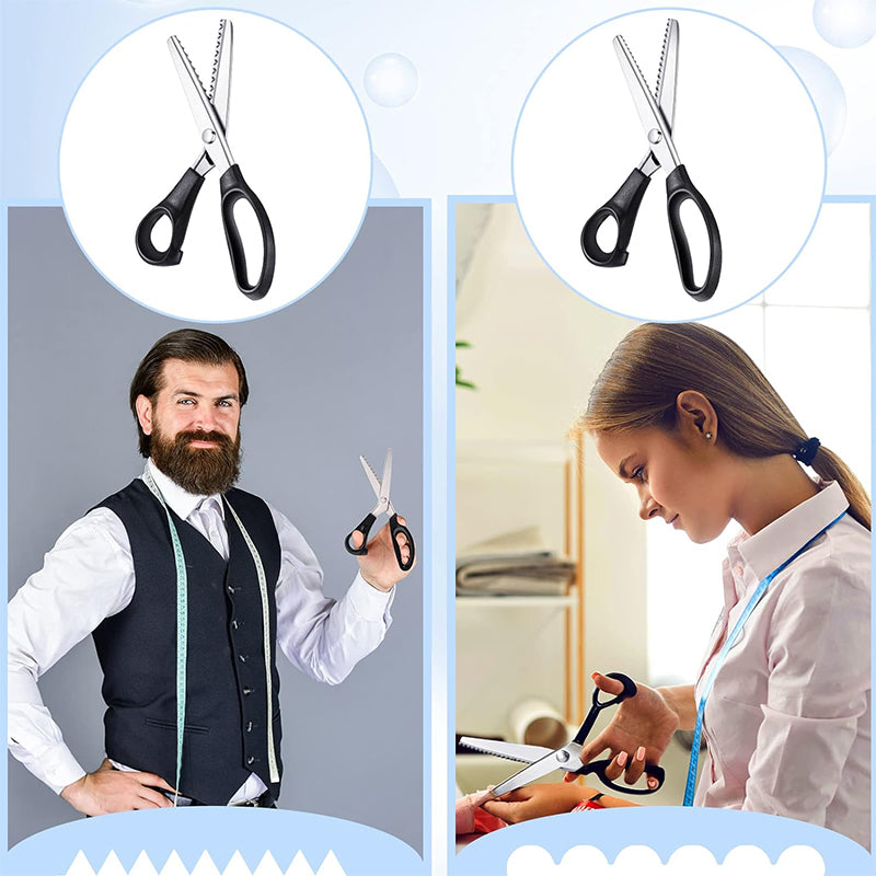 - Multifunctional Scissors - An essential for your sewing box. The sharp blades are saw-toothed instead of straight leaving a zigzag pattern as you cut, the sawtooth pattern can limit the length of the frayed thread of unfinished cloth edges and thus minimize damage.