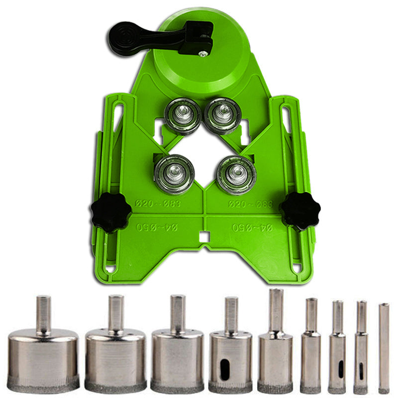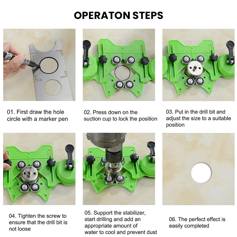 The adjustable drill guide supports a wide range of bit sizes, making it ideal for various projects, from bathroom renovations to intricate tile installations.