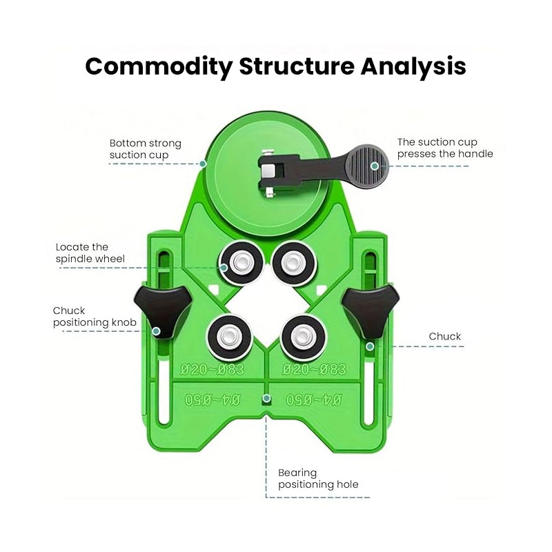 Equipped with powerful suction cups, the locator stays firmly in place, reducing movement and ensuring flawless drilling on delicate materials like ceramic, glass, and marble.