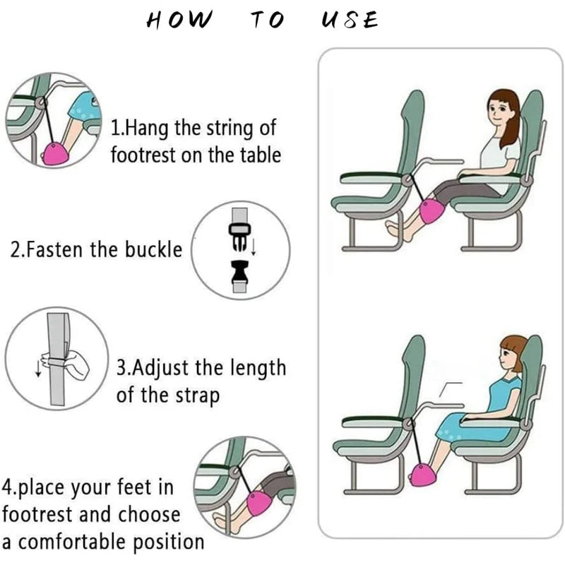 Portable Foot Sling made with premium memory cotton provides lower back Support and comfort for airplane travel working leisure time.