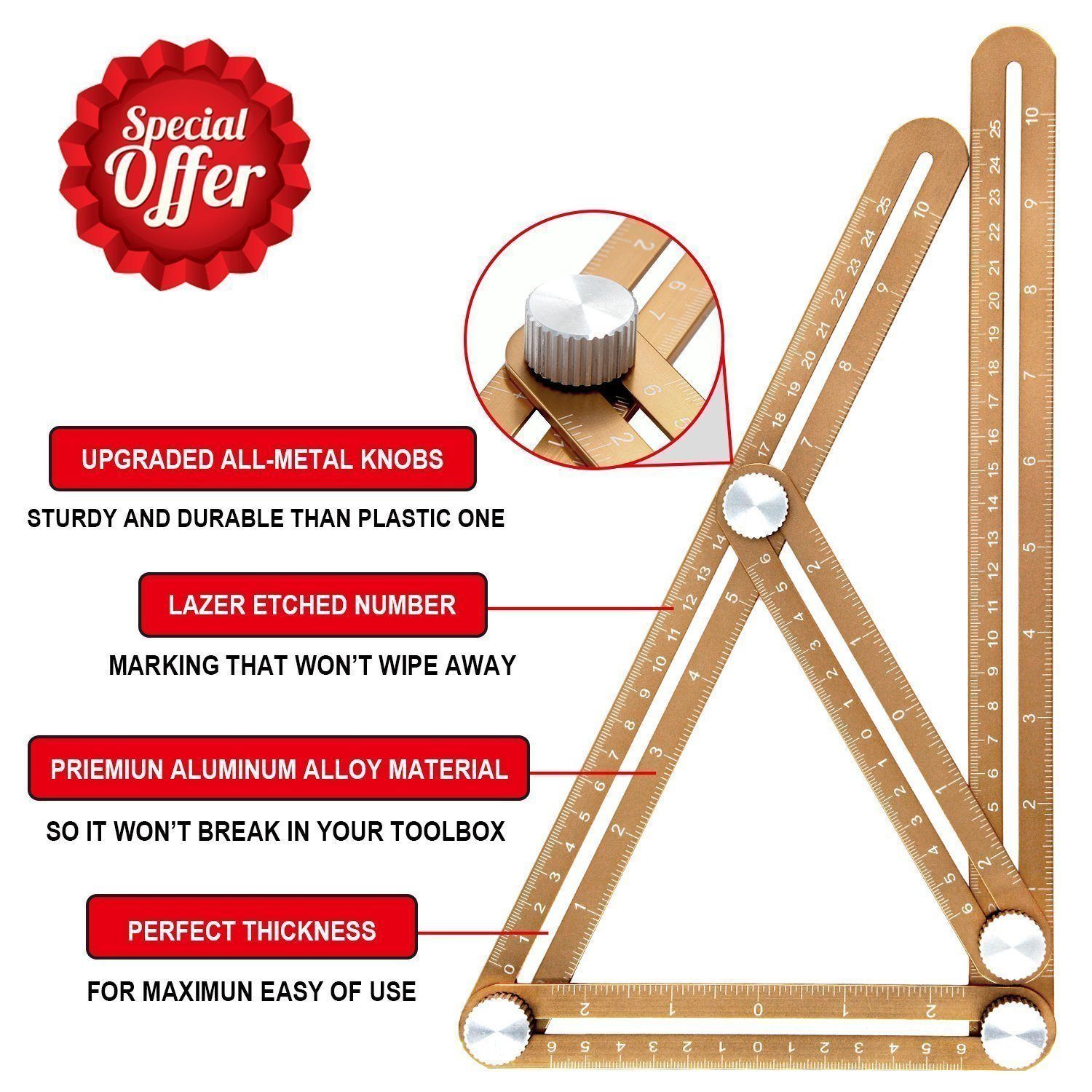 - DURABLE, COMPACT & LIGHTWEIGHT: Excellent portable tool, easily folded and carried to your next project.Metal Material makes the ruler durable for any job and industry. Your tool folds for easy storage and utilizesing a unique tightening mechanism for one-handed operation.