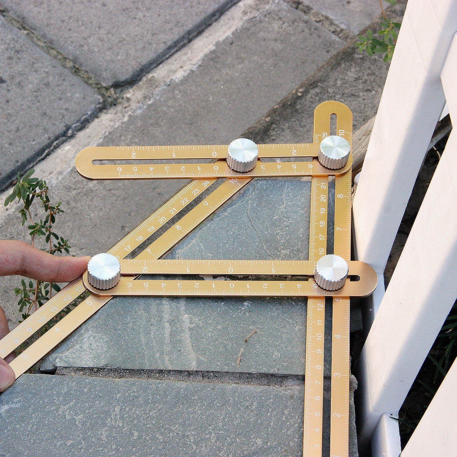 - HIGHLY VERSATILE: Multi-Angle Measuring Ruler slides and locks into any desired angles to save you time on repetitive measurements. The four-sided ruler mechanism slides and locks into any desired angle as a reusable stencil for endless applications. No need to create a new template for each new job or remeasure the same angles over and over again- the measuring tool saves you both time and effort!