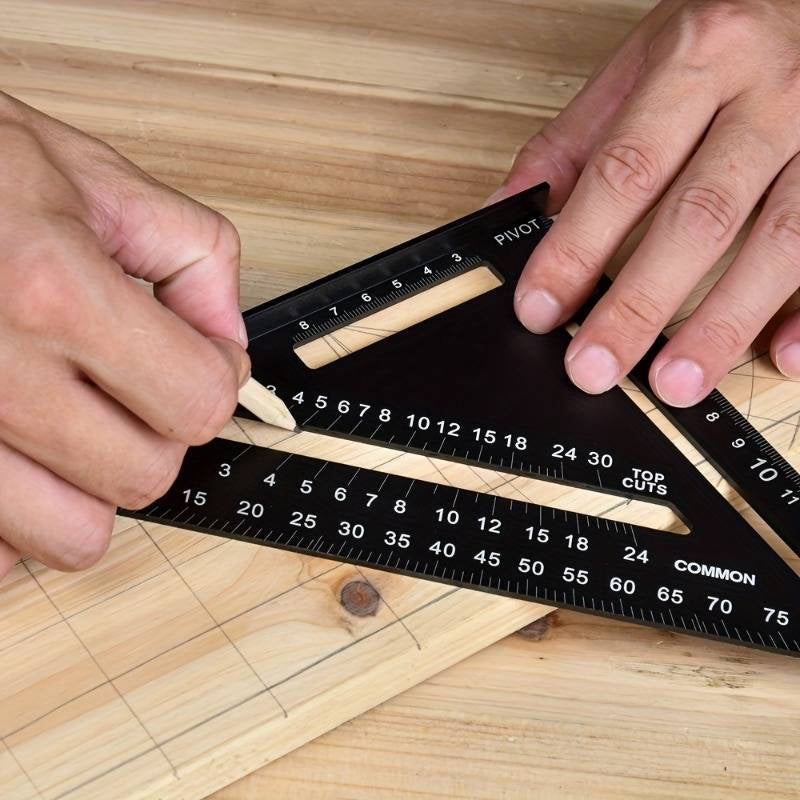 【Gradueringer】Denne konstruksjonsfirkanten har permanente, støpte graderinger og tall som er lettleste og godt synlige. Med dette verktøyet kan du enkelt merke og rippe tømmeret til den størrelsen du ønsker.