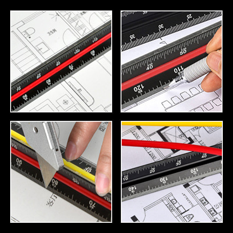 【Høy kvalitet】Den er laget av presis og slitesterk CNC-bearbeidet aluminiumslegering, som er lett og praktisk. God oksidasjonsbestandighet, ikke lett å bryte, hver trekantlinjal er tykkere, korrosjonsbestandig og har høy hardhet.