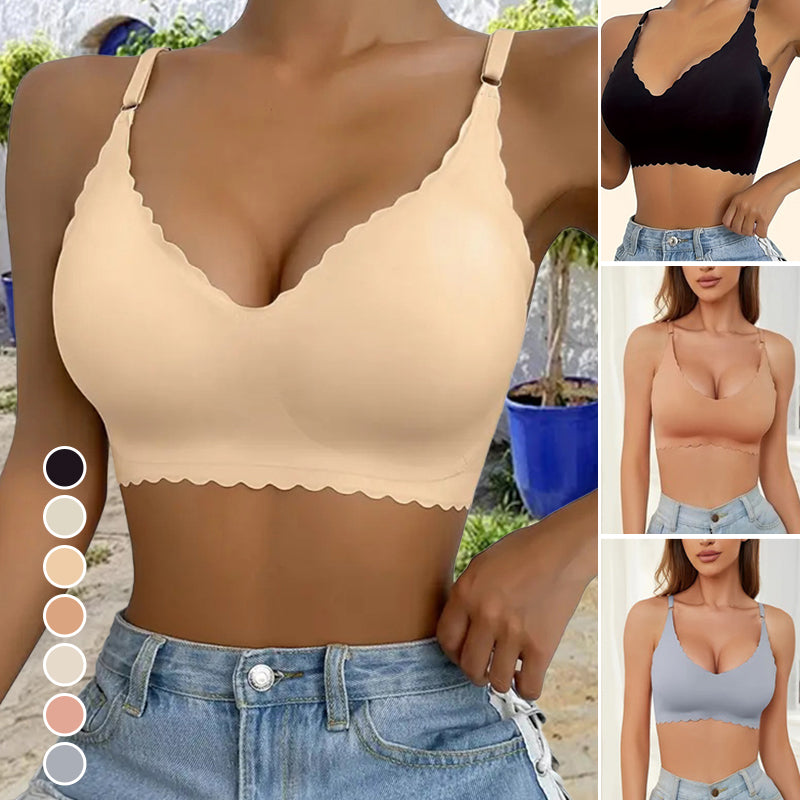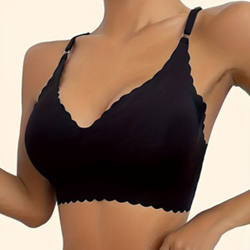 Elegant scallop trim meets ultimate support—embrace effortless beauty with our wireless push-up bra!