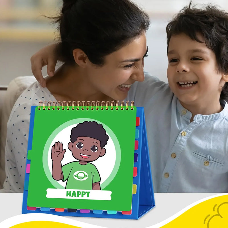 - FLIP TO IDENTIFY AN EMOTION: Use the tabs around the edge to easily find the emotion your child is feeling.