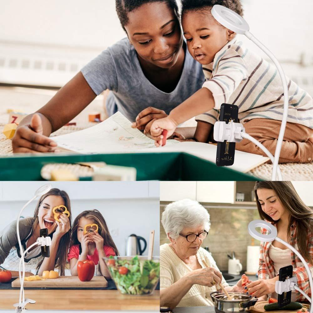 It is ideal for taking perfect selfies. The selfie light clamps onto almost any table edge and features a secure phone holder and an LED ring light with adjustable brightness. It's perfect for taking your selfies, videos, and live streams to the next level! Create a more pretty and comfortable atmosphere and then enjoy yourself!