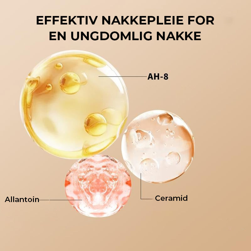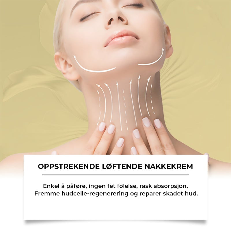 Vår rullende halskrem er en revolusjonerende hudpleieløsning utviklet for å gi næring, stramme opp og forynge den delikate huden rundt halsen.