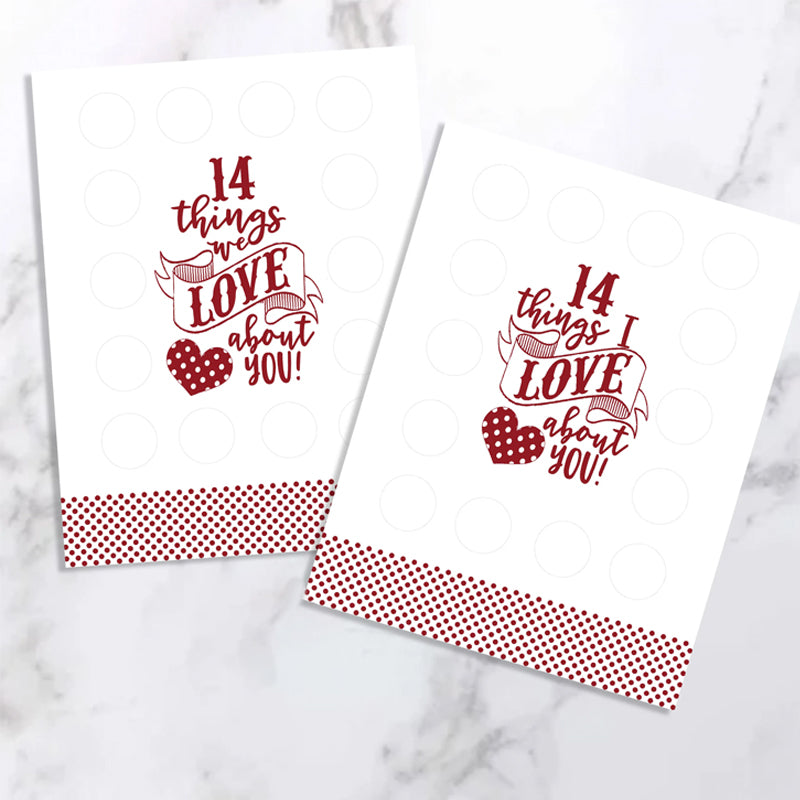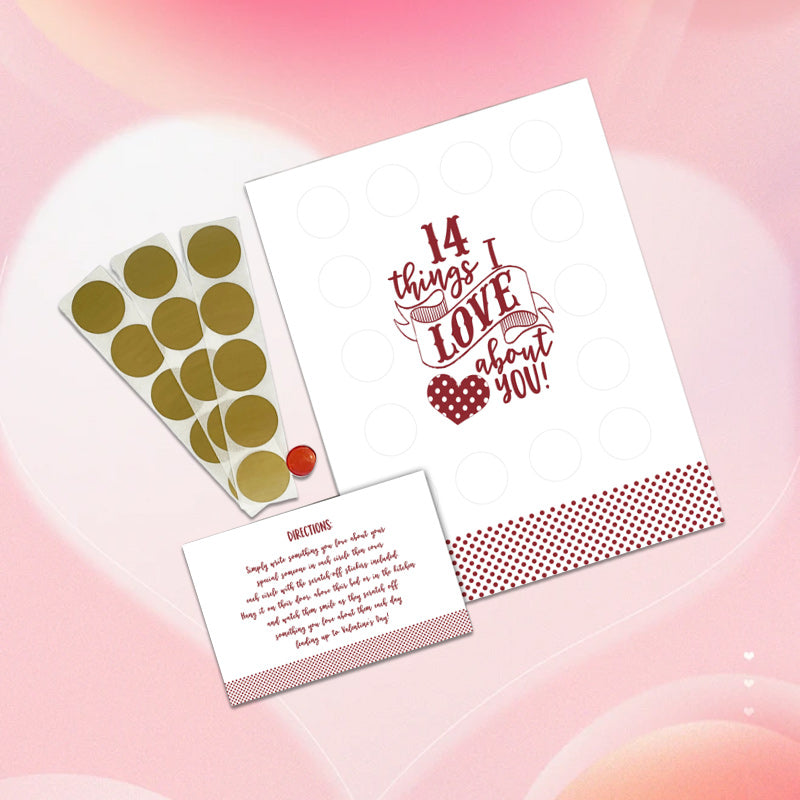 Make your loved ones feel extra special this Valentine's with our adorable "14 things I love about you" scratch-off!